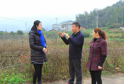 林善平代表(中)走訪回鄉(xiāng)的大學畢業(yè)生施穎( 左一),鼓勵她扎根山區(qū),為山區(qū)發(fā)展貢獻聰明才智。攝影/ 王爭