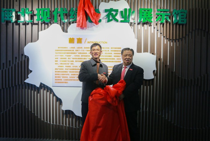 校董事長(zhǎng)傅光明為“閩北現(xiàn)代綠色農(nóng)業(yè)展示館”揭牌
