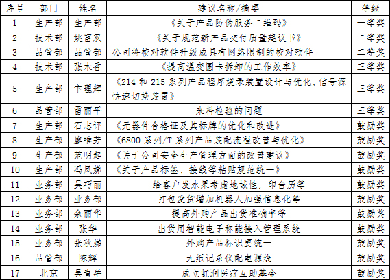 近日,虹潤公司召開了合理化建議評選活動,活動得到廣大員工的積極響應,踴躍參與,經(jīng)公司評審小組綜合評定,共評出了1項一等獎、2項二等獎、3項三等獎和11項鼓勵獎。長期以來,公司將合理化建議制度列為常態(tài)化機制運行,把合理化建議活動作為激勵廣大職工參與管理、發(fā)揮創(chuàng)造才能、實現(xiàn)自我價值的重要途徑,激勵員工以“虹潤不怕遠征難”的企業(yè)精神開拓進取,積極投身節(jié)能挖潛、技術(shù)改造,通過職工在實際工作中針對可改進事項提出好點子、金點子,不斷創(chuàng)新工作方式方法,優(yōu)化生產(chǎn)技術(shù)工藝,達到提質(zhì)及降本增效的目標。