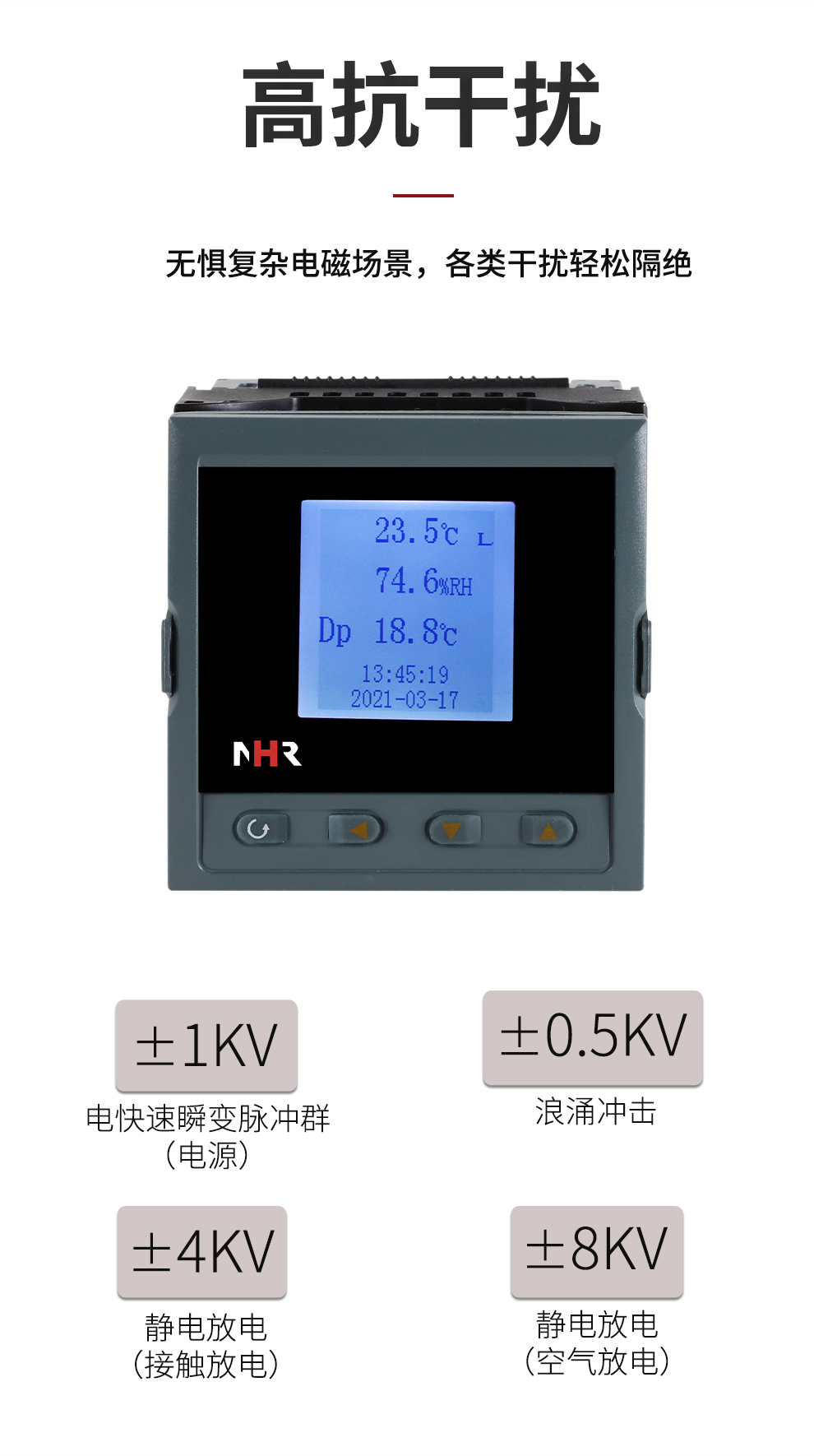 虹潤(rùn)公司是專業(yè)生產(chǎn)環(huán)境監(jiān)測(cè)儀表的國(guó)家專精特新“小巨人”企業(yè)。生產(chǎn)的盤裝式溫濕度控制器,具有溫度、濕度、露點(diǎn)高精準(zhǔn)的測(cè)量,壁掛式結(jié)構(gòu),IP65防護(hù)穩(wěn)定性強(qiáng),高抗干擾,帶RS485/RS232通訊輸出等級(jí)等特點(diǎn)。產(chǎn)品獲得一種手持式低功耗溫濕度檢測(cè)儀、大屏幕溫濕度記錄儀等2項(xiàng)國(guó)家發(fā)明專利,主持起草物聯(lián)網(wǎng)智能溫度儀表通用技術(shù)條件、冷鏈溫度記錄儀等2項(xiàng)國(guó)家標(biāo)準(zhǔn),通信系統(tǒng)多通道數(shù)據(jù)采集控制終端規(guī)范軍用標(biāo)準(zhǔn),以及現(xiàn)場(chǎng)設(shè)備集成等5項(xiàng)智能制造國(guó)家標(biāo)準(zhǔn),參與國(guó)際5G標(biāo)準(zhǔn)制定,取得溫濕度儀表等2項(xiàng)相關(guān)軟件著作權(quán)。產(chǎn)品廣泛應(yīng)用于工業(yè)現(xiàn)場(chǎng)、農(nóng)業(yè)大棚、倉(cāng)儲(chǔ)物流、地下管廊、養(yǎng)殖孵化、配電機(jī)房等諸多領(lǐng)域。