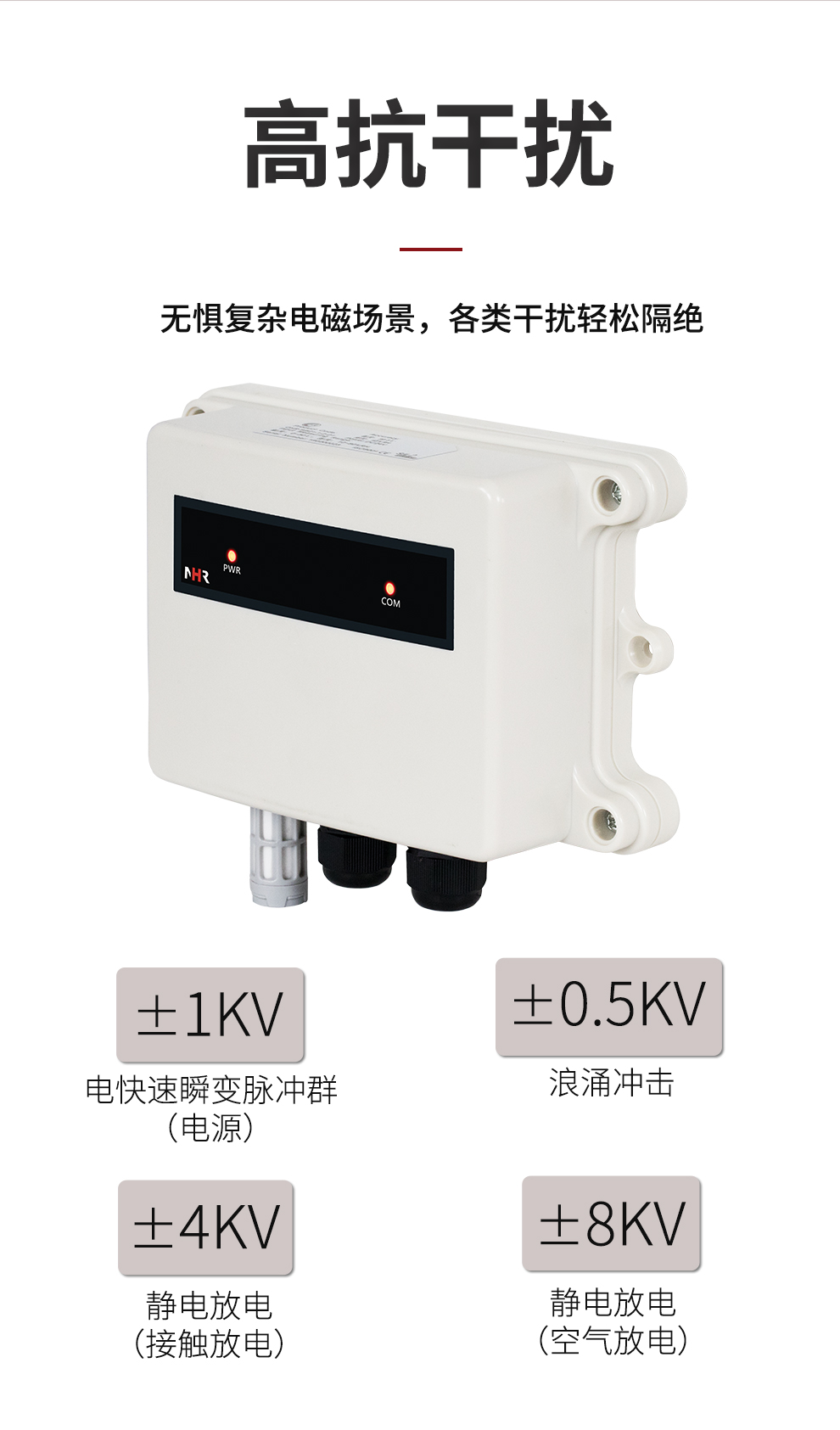 虹潤(rùn)公司是專業(yè)生產(chǎn)環(huán)境監(jiān)測(cè)儀表的國(guó)家專精特新“小巨人”企業(yè)。生產(chǎn)的一體式溫濕度變送器,具有溫度、濕度、露點(diǎn)高精準(zhǔn)的測(cè)量與變送,報(bào)警繼電器輸出,RS485/RS232通訊,IP65防護(hù)等級(jí)等特點(diǎn)。產(chǎn)品獲得一種手持式低功耗溫濕度檢測(cè)儀、大屏幕溫濕度記錄儀等2項(xiàng)國(guó)家發(fā)明專利,主持起草物聯(lián)網(wǎng)智能溫度儀表通用技術(shù)條件、冷鏈溫度記錄儀等2項(xiàng)國(guó)家標(biāo)準(zhǔn),以及通信系統(tǒng)多通道數(shù)據(jù)采集控制終端規(guī)范軍用標(biāo)準(zhǔn),以及現(xiàn)場(chǎng)設(shè)備集成等5項(xiàng)智能制造國(guó)家標(biāo)準(zhǔn),參與國(guó)際5G標(biāo)準(zhǔn)制定,取得溫濕度儀表等3項(xiàng)相關(guān)軟件著作權(quán)。產(chǎn)品廣泛應(yīng)用于工業(yè)現(xiàn)場(chǎng)、農(nóng)業(yè)大棚、倉(cāng)儲(chǔ)物流、地下管廊、養(yǎng)殖孵化、配電機(jī)房等諸多領(lǐng)域。