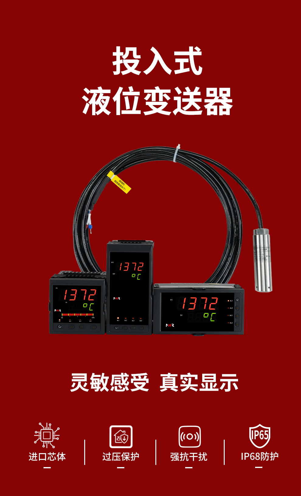 虹潤公司是專業(yè)生產(chǎn)液位變送器的國家專精特新“小巨人”企業(yè),生產(chǎn)的投入式液位變送器,具有采用進口芯體,精準測量,過壓保護,高抗干擾,IP68防護等級等特點。產(chǎn)品獲得一種數(shù)字顯示低功耗壓力表、一種信號發(fā)生器裝置等2項國家發(fā)明專利,主持起草工業(yè)過程控制系統(tǒng)用模擬輸入兩位或多位輸出儀表、工業(yè)過程測量和控制系統(tǒng)用壓力/差壓變送器等2項國家標準,通信系統(tǒng)多通道數(shù)據(jù)采集控制終端規(guī)范軍用標準,以及現(xiàn)場設備集成等5項智能制造國家標準。參與國際5G標準制定,取得數(shù)顯壓力表等2項相關軟件著作權。產(chǎn)品廣泛應用于電力、冶金、農(nóng)業(yè)、食品、制藥、水處理等對液位監(jiān)測需求的行業(yè)領域。