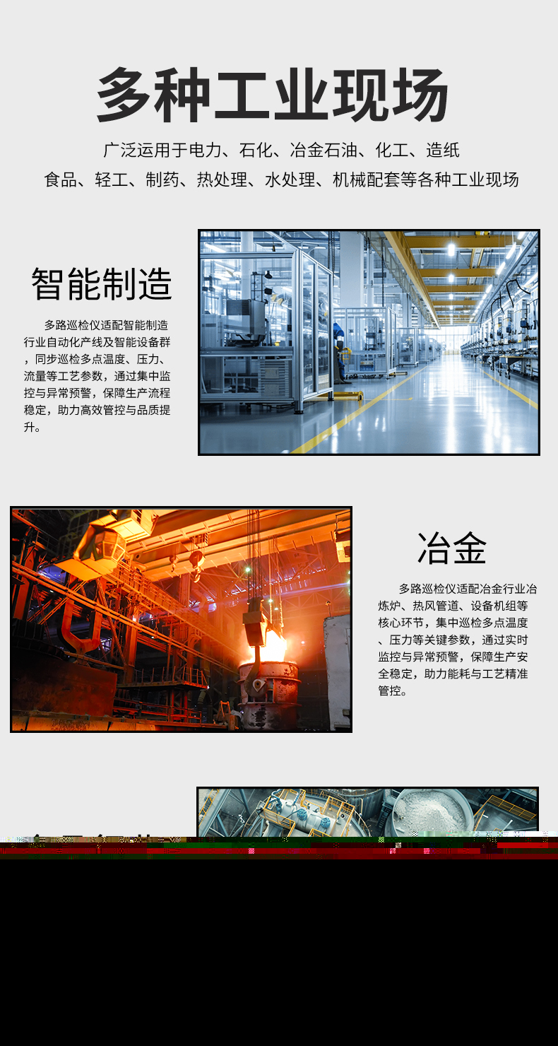 虹潤(rùn)公司是專業(yè)生產(chǎn)多路溫度巡檢儀的國(guó)家專精特新“小巨人”企業(yè),生產(chǎn)的增強(qiáng)型多路巡檢儀,具有8路/16路測(cè)量通道,全切換信號(hào)輸入,多種輸出類型,高抗干擾,RS485/RS232通訊等特點(diǎn)。產(chǎn)品獲得巡回檢測(cè)顯示方法及裝置、儀表殼體等2項(xiàng)國(guó)家發(fā)明專利,主持起草工業(yè)過程控制系統(tǒng)用模擬輸入兩位或多位輸出儀表、物聯(lián)網(wǎng)智能溫度儀表通用技術(shù)條件等2項(xiàng)國(guó)家標(biāo)準(zhǔn),以及通信系統(tǒng)多通道數(shù)據(jù)采集控制終端規(guī)范軍用標(biāo)準(zhǔn),參與國(guó)際5G標(biāo)準(zhǔn)制定,取得多回路測(cè)量顯示控制儀等3項(xiàng)相關(guān)軟件著作權(quán)。產(chǎn)品廣泛應(yīng)用于電力、石化、冶金、制藥、水處理、機(jī)械配套等各種工業(yè)現(xiàn)場(chǎng)。