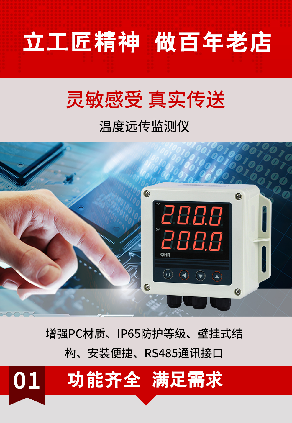虹潤公司是專業(yè)生產(chǎn)多路溫度巡檢儀的國家專精特新“小巨人”企業(yè),生產(chǎn)的溫度遠傳監(jiān)測儀,具有兩路PT100信號輸入,壁掛式結(jié)構(gòu),IP65防護等級,高抗干擾,帶RS485通訊輸出等特點。產(chǎn)品獲得巡回檢測顯示方法及裝置、儀表殼體等2項國家發(fā)明專利,主持起草工業(yè)過程控制系統(tǒng)用模擬輸入兩位或多位輸出儀表、物聯(lián)網(wǎng)智能溫度儀表通用技術(shù)條件等2項國家標(biāo)準(zhǔn)以及通信系統(tǒng)多通道數(shù)據(jù)采集控制終端規(guī)范軍用標(biāo)準(zhǔn),參與國際5G標(biāo)準(zhǔn)制定,取得雙路回路溫度遠傳監(jiān)測儀等2項相關(guān)軟件著作權(quán)。產(chǎn)品廣泛應(yīng)用于電力、石化、冶金、制藥、水處理、機械配套等各種工業(yè)現(xiàn)場。