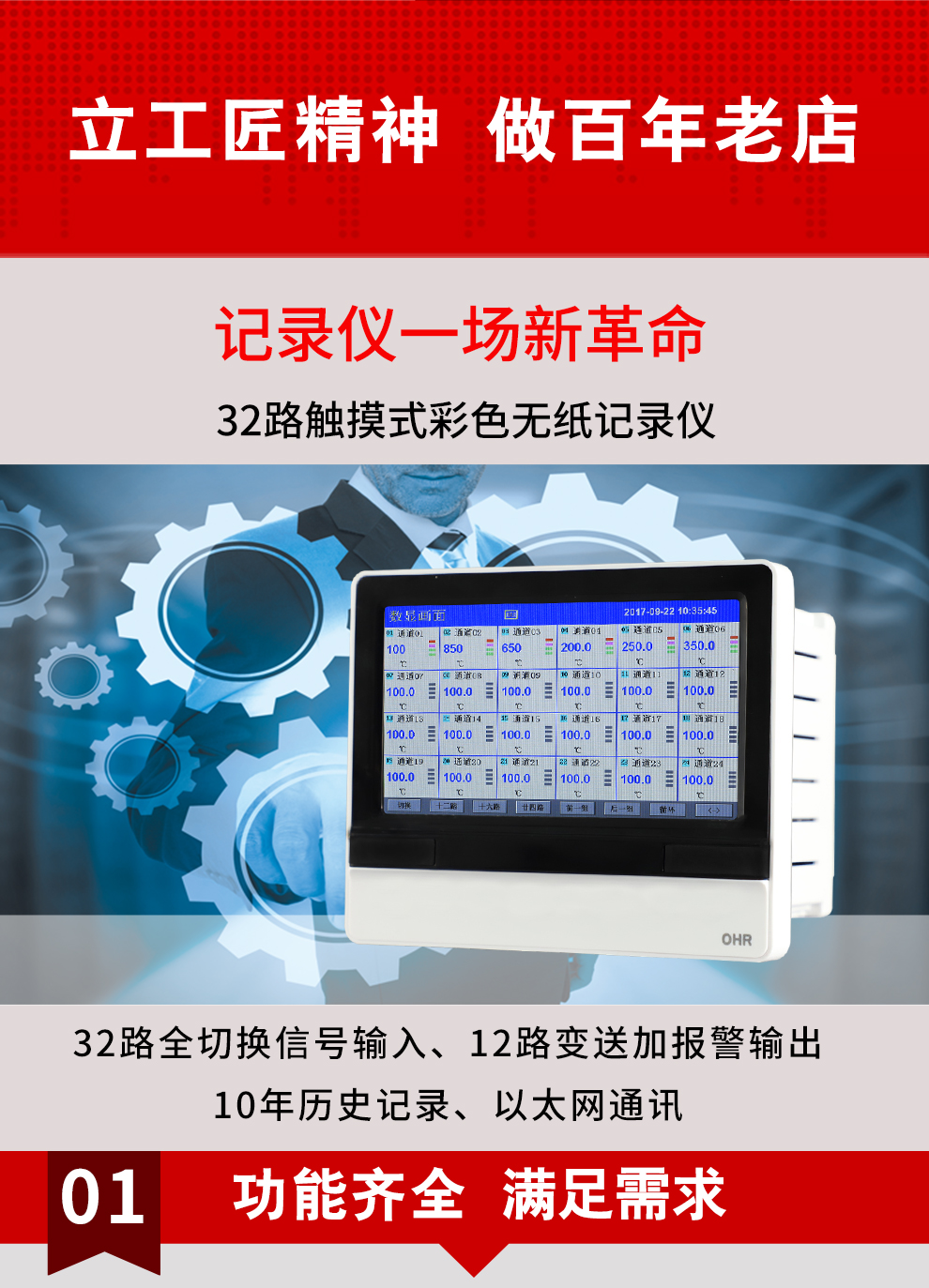 虹潤公司是專業(yè)生產(chǎn)無紙記錄儀的國家專精特新“小巨人”企業(yè)。生產(chǎn)的觸摸式彩色無紙記錄儀,具有32路全切換輸入,通道之間相互隔離,數(shù)據(jù)記錄與轉(zhuǎn)存功能,配套上位機管理軟件,RS485/以太網(wǎng)通訊等特點。產(chǎn)品獲得無紙記錄儀、數(shù)據(jù)采集控制工作站、智能化控制器、巡回檢測顯示方法及裝置等4項國家發(fā)明專利;主持起草物聯(lián)網(wǎng)智能記錄儀表通用技術(shù)條件、物聯(lián)網(wǎng)智能溫度儀表通用技術(shù)條件等2項國家標準,通信系統(tǒng)多通道數(shù)據(jù)采集控制終端規(guī)范軍用標準,以及空間數(shù)據(jù)與信息數(shù)據(jù)傳輸系統(tǒng)等2項航天標準。參與國際5G標準制定;取得觸摸式彩色無紙記錄儀等4項相關(guān)軟件著作權(quán)。產(chǎn)品廣泛應(yīng)用于石化、冶金、電力、制藥、新能源、農(nóng)業(yè)等諸多領(lǐng)域。