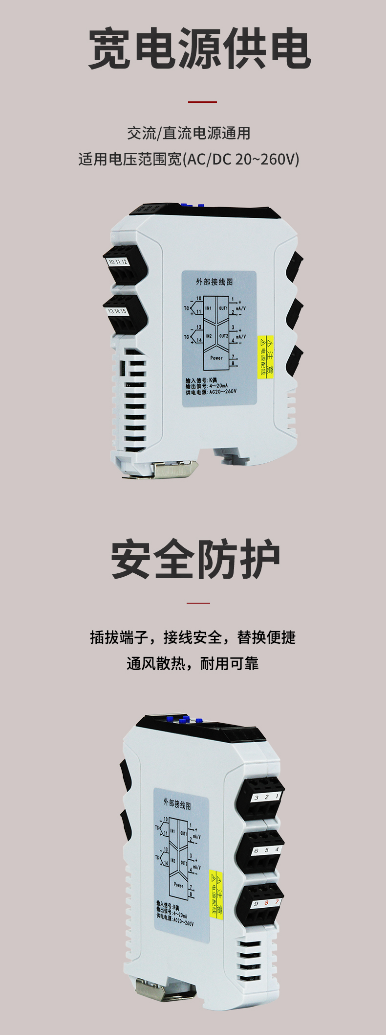 虹潤(rùn)公司是專業(yè)生產(chǎn)溫度變送器的國家專精特新“小巨人”企業(yè)。生產(chǎn)的導(dǎo)軌式智能溫度變送器,具有高清顯示單元,溫度傳感器類型及量程可設(shè)置,寬范圍電源供電,高抗干擾,帶RS485通訊等特點(diǎn)。產(chǎn)品獲得具備減震抗干擾能力的溫度變送器、信號(hào)隔離器、一種二端子模塊、無源信號(hào)隔離器等4項(xiàng)國家發(fā)明專利,主持起草物聯(lián)網(wǎng)智能溫度儀表、現(xiàn)場(chǎng)設(shè)備工具(FDT)接口規(guī)范、工業(yè)過程測(cè)量和控制系統(tǒng)用溫度變送器等3項(xiàng)國家標(biāo)準(zhǔn),以及通信系統(tǒng)多通道數(shù)據(jù)采集控制終端規(guī)范軍用標(biāo)準(zhǔn),參與國際5G標(biāo)準(zhǔn)制定,取得智能數(shù)顯溫度變送器等2項(xiàng)相關(guān)軟件著作權(quán)。產(chǎn)品廣泛應(yīng)用于電力、化工,冶金、制藥、機(jī)械制造、樓宇自控等工業(yè)領(lǐng)域現(xiàn)場(chǎng)自動(dòng)化測(cè)溫過程。