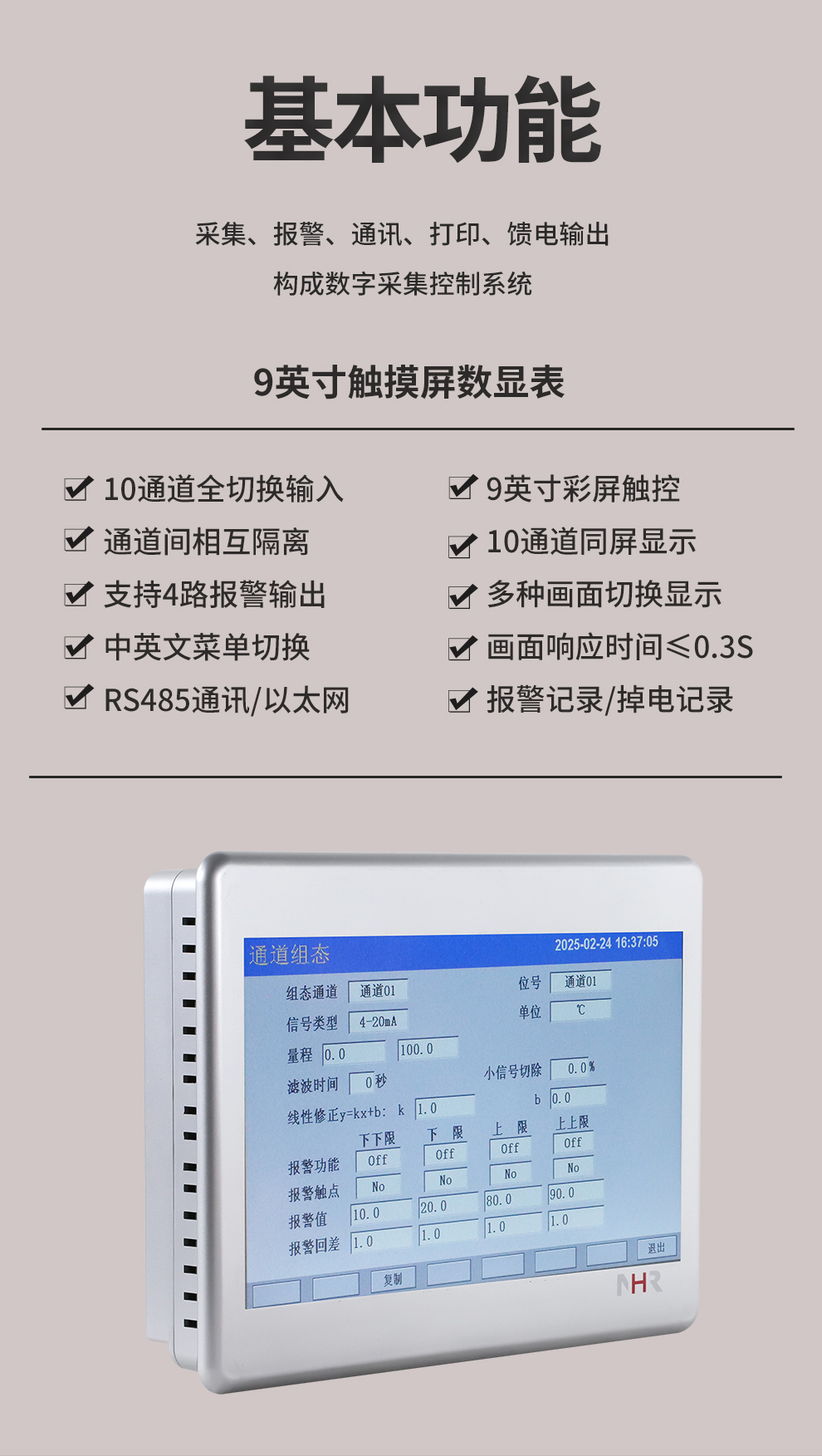 虹潤公司是專業(yè)生產(chǎn)無紙記錄儀的國家專精特新“小巨人”企業(yè)。生產(chǎn)的觸摸屏數(shù)顯表,具有觸摸大屏顯示,多通道全切換輸入,通道間隔離,RS485/以太網(wǎng)通訊,5/7/9英寸可選等特點(diǎn)。產(chǎn)品獲得無紙記錄儀、數(shù)據(jù)采集控制工作站、智能化控制器、巡回檢測顯示方法及裝置等4項(xiàng)國家發(fā)明專利,主持起草物聯(lián)網(wǎng)智能記錄儀表通用技術(shù)條件、物聯(lián)網(wǎng)智能溫度儀表通用技術(shù)條件等2項(xiàng)國家標(biāo)準(zhǔn),通信系統(tǒng)多通道數(shù)據(jù)采集控制終端規(guī)范軍用標(biāo)準(zhǔn),以及空間數(shù)據(jù)與信息數(shù)據(jù)傳輸系統(tǒng)等2項(xiàng)航天標(biāo)準(zhǔn),參與國際5G標(biāo)準(zhǔn)制定,取得觸摸屏彩色無紙記錄儀等4項(xiàng)相關(guān)軟件著作權(quán)。產(chǎn)品廣泛應(yīng)用于冶金、石化、電力、制藥、新能源、現(xiàn)代農(nóng)業(yè)生產(chǎn)過程等諸多領(lǐng)域。