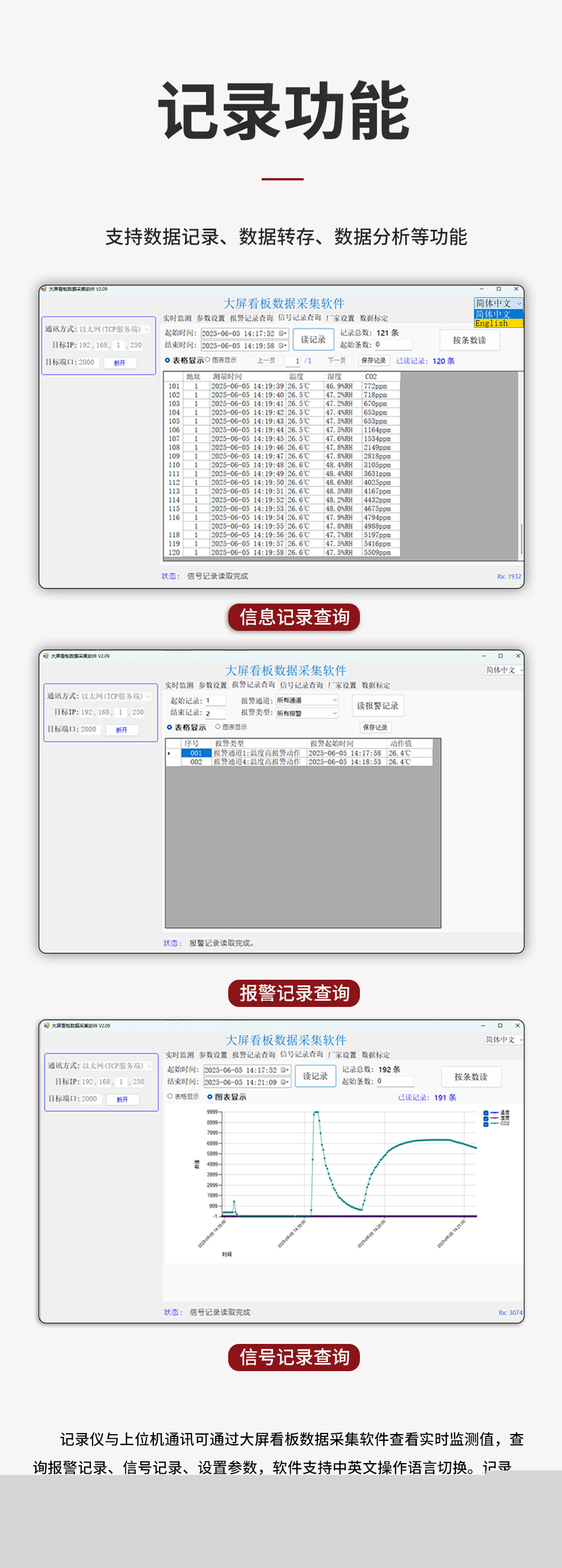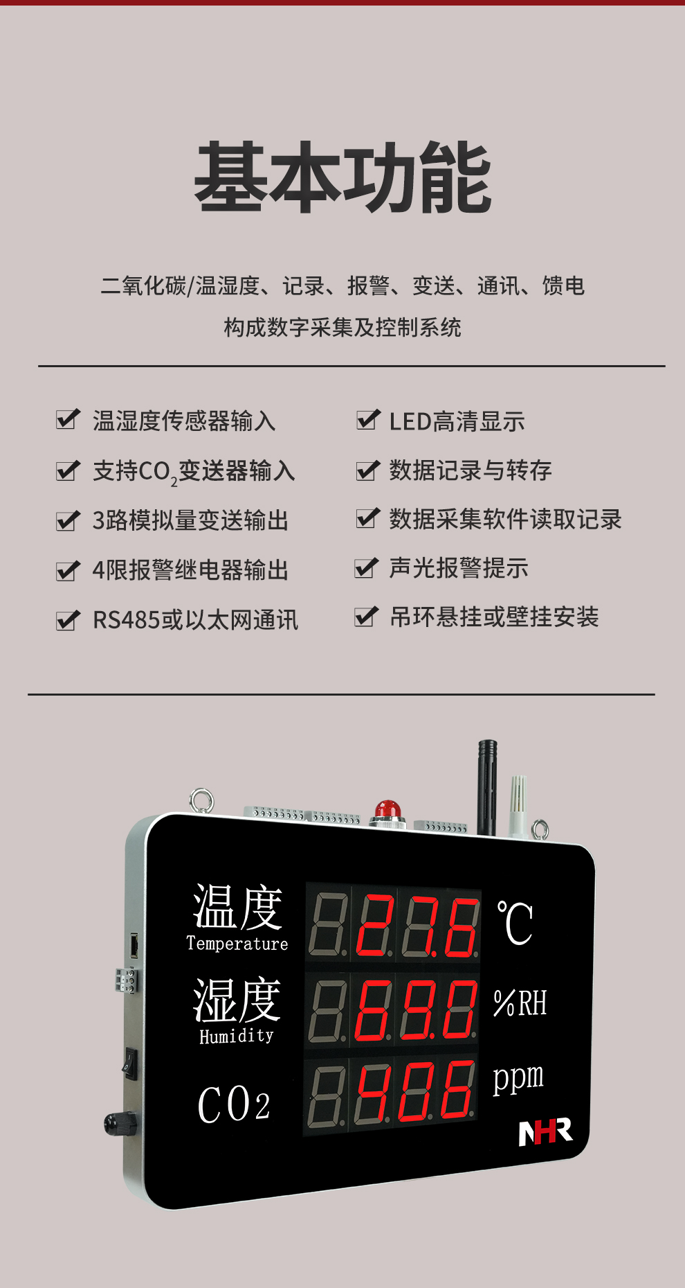 虹潤(rùn)公司是專(zhuān)業(yè)生產(chǎn)環(huán)境監(jiān)測(cè)儀表的國(guó)家專(zhuān)精特新“小巨人”企業(yè)。生產(chǎn)的大屏二氧化碳溫濕度記錄儀,具有高清大屏顯示,數(shù)據(jù)記錄與轉(zhuǎn)存,同步觸發(fā)可靠預(yù)警,RS485或以太網(wǎng)通訊等特點(diǎn)。產(chǎn)品獲得一種手持式低功耗溫濕度檢測(cè)儀、無(wú)紙記錄儀等2項(xiàng)國(guó)家發(fā)明專(zhuān)利,主持起草物聯(lián)網(wǎng)智能溫度儀表通用技術(shù)條件、冷鏈溫度記錄儀等2項(xiàng)國(guó)家標(biāo)準(zhǔn),通信系統(tǒng)多通道數(shù)據(jù)采集控制終端規(guī)范軍用標(biāo)準(zhǔn),以及現(xiàn)場(chǎng)設(shè)備集成等5項(xiàng)智能制造國(guó)家標(biāo)準(zhǔn),參與國(guó)際5G標(biāo)準(zhǔn)制定,取得大屏幕溫濕度數(shù)據(jù)記錄儀等3項(xiàng)相關(guān)軟件著作權(quán)。產(chǎn)品廣泛應(yīng)用于實(shí)驗(yàn)室、農(nóng)業(yè)大棚、倉(cāng)庫(kù)、工業(yè)現(xiàn)場(chǎng)、配電機(jī)房、畜牧業(yè)等諸多領(lǐng)域。