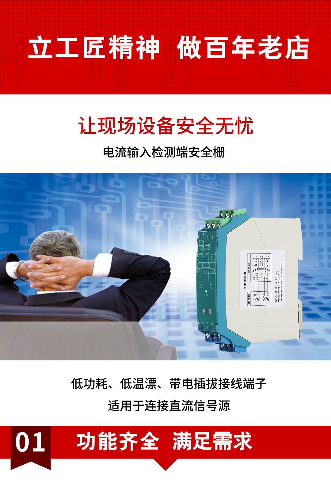 虹潤公司是專業(yè)生產(chǎn)隔離器的國家專精特新“小巨人”企業(yè)。生產(chǎn)的隔離式安全柵涵蓋信號電流輸入、電壓輸入、熱電阻輸入、熱電偶輸入、頻率輸入、開關(guān)量輸入等多種產(chǎn)品類型。產(chǎn)品獲得具備減震抗干擾能力的溫度變送器、信號隔離器、一種二端子模塊、無源信號隔離器等4項國家發(fā)明專利,主持起草物聯(lián)網(wǎng)智能溫度儀表、現(xiàn)場設(shè)備工具(FDT)接口規(guī)范、工業(yè)過程測量和控制系統(tǒng)用溫度變送器等3項國家標(biāo)準(zhǔn),以及通信系統(tǒng)多通道數(shù)據(jù)采集控制終端規(guī)范軍用標(biāo)準(zhǔn)。參與國際5G標(biāo)準(zhǔn)制定,取得智能隔離式安全柵等4項相關(guān)軟件著作權(quán)。產(chǎn)品廣泛應(yīng)用于石油、電力、化工,冶金、智能制造、污水處理等諸多行業(yè)。